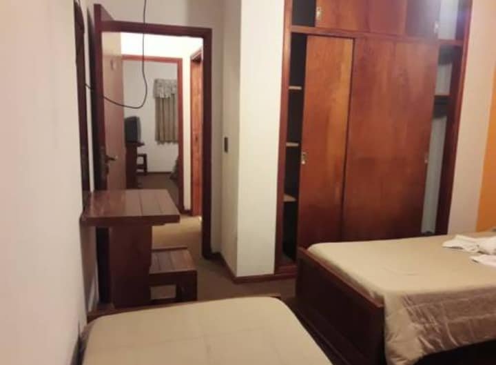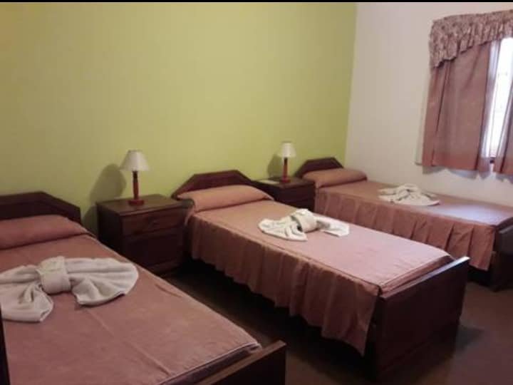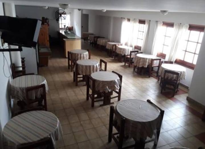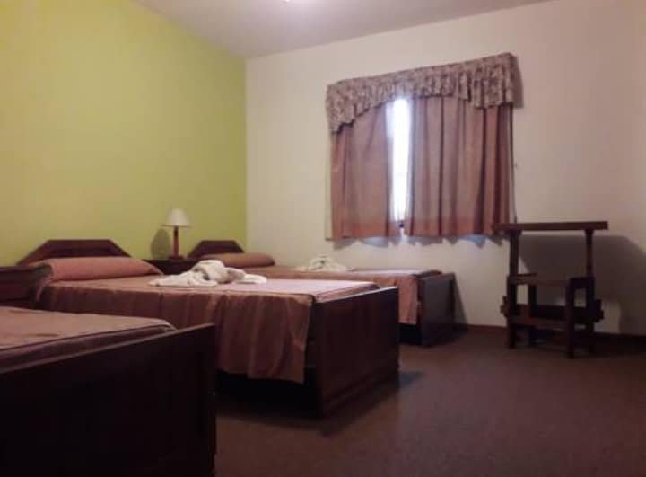 📌Consta de una sala de estar compartida, desayunador amplio para los huespedes , 32 habitaciones totalmente equipadas, alfombradas, con armario, baño privado, tv por cable y cochera.