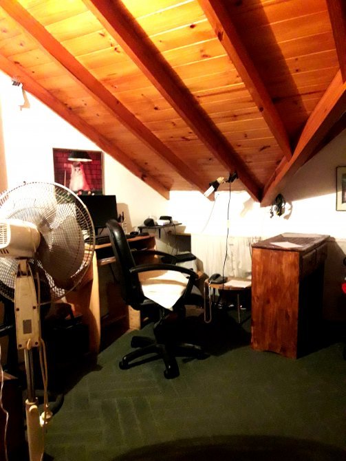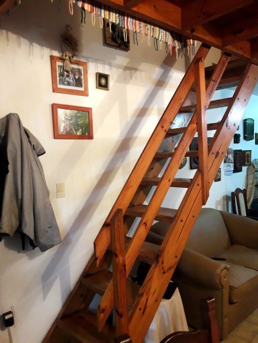En la parte superior, hay una pequeña sala de estar, tipo biblioteca. Baño completo, mas otra habitación con placares empotrados