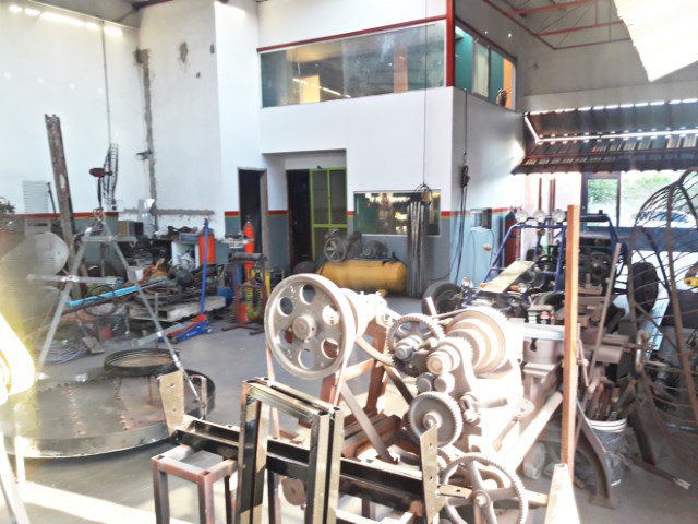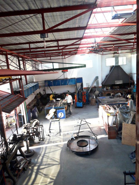 El galpón consta de una oficina vidreada en la parte alta con escalera caracol y un baño