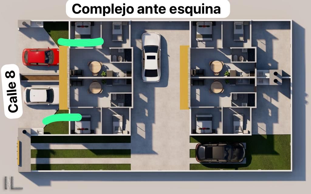 EL COMPLEJO SE DESPALZA EN UN LOTE DE 405 M2, SE COMPONE DE 4 CHALETS Y SE DISTRIBUYE DE LA SIGUINETE MANERA: