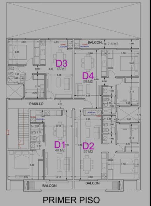 -2do PISO CTRA.FRENTE - UF 7 (48 m²) - CONTADO = NO DISPONIBLE -2do PISO CTRA.FRENTE - UF 8 (50 m²) - CONTADO = U$S 60.000 DISPONIBLE -3er PISO FRENTE - "PENHOUSE" (89 m²) - CONTADO = U$S 106.800 DISPONIBLE