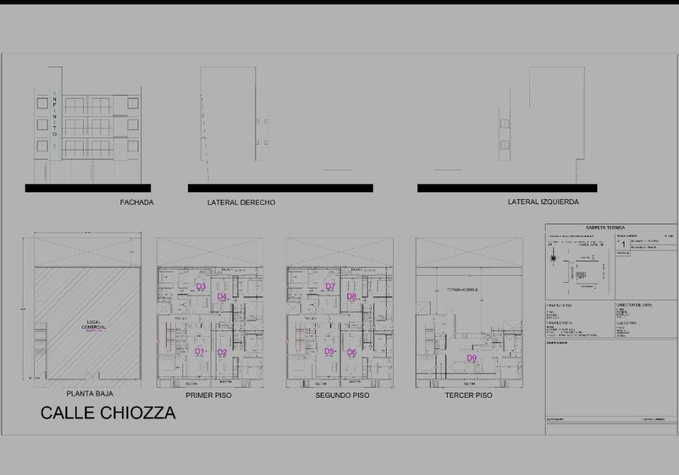 1er piso Y 2do piso dispone de 4 departamentos 3 ambientes amplios con balcones. Los departamentos de 3 ambientes constan de :